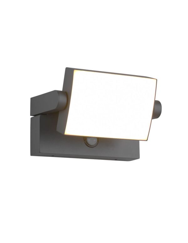 El aplique LED KANSAS con sensor ofrece luz orientable de 10W y 1000lm, diseño en antracita y protección IP54, brindando seguridad, eficiencia y estilo en entradas, patios y jardines.