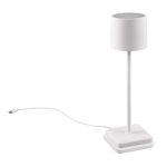 La lámpara de sobremesa exterior GARCIA ofrece una iluminación decorativa versátil gracias a su sistema RGB que permite crear ambientes coloridos y personalizados. Su diseño portátil con asa y su acabado blanco la convierten en una pieza moderna que se adapta fácilmente a terrazas, jardines y balcones.